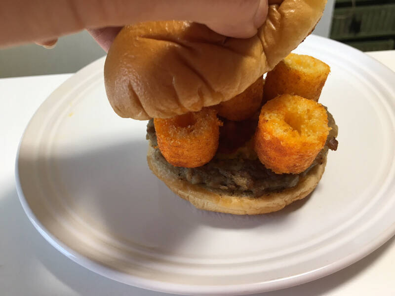 b級フード研究家 野島慎一郎のバカレシピ ファミチキにうまい棒のザクザク食感をトッピングしたお手軽ソースカツ丼 ファミチキソースカツ丼 ライフ 文化 ニュース 週プレnews 週刊プレイボーイのニュースサイト